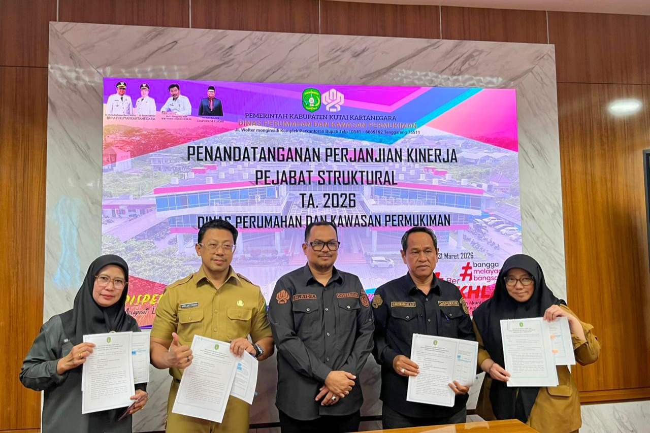 Tenggarong – Dinas Perumahan dan Kawasan Permukiman (Disperkim) Kabupaten Kutai Kartanegara (Kukar) menunjukkan komitmennya dalam meningkatkan kinerja organisasi melalui Penandatanganan Perjanjian Kinerja Pejabat Struktural Tahun Anggaran 2026. Kegiatan ini berlangsung di Ruang Rapat Disperkim Kukar pada Selasa (31/03/2026).